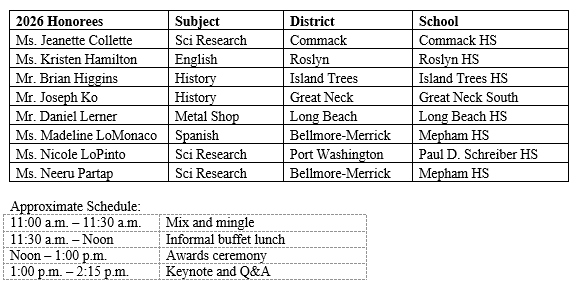 Please join us to honor the eight Long Island teachers who will receive the “Distinguished Teacher Award for 2026!” All honorees were nominated by current Harvard undergraduates and then selected by the Harvard Club of Long Island’s Distinguished Teacher Awards Committee.